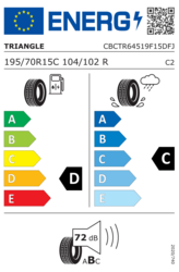 Erbjuder utmärkt grepp i både torra och våta förhållanden, passar Triangle TR645-däcket för skåpbilar och transportfordon. Den longitudinella spåret är anpassat för hög hastighet. Slitaget är långsamt och jämnt.