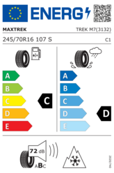 Med Trek M7 245/70 R16 107S kan vinterkörningen med personbilar med starka motorer anpassas. Spåren i däcket ger bra väghållning på våt väg. Det här däcket tillverkas av en speciell gummiblandning, som ger minskat rullmotstånd och bättre hållbarhet.